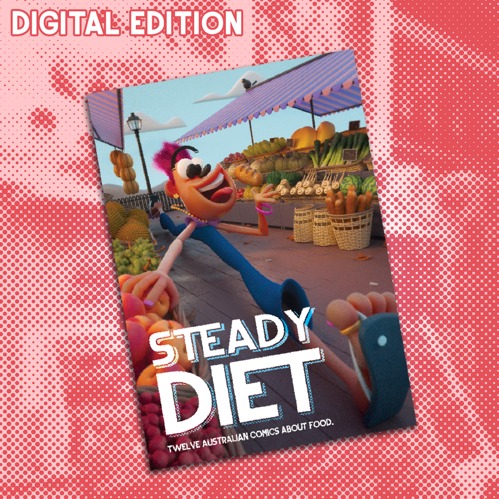 Steady Diet is a new comicbook from the publisher of the Meet Me in the Pit series. This debut issue features some of Australia’s best emerging cartoonists creating stories that explore their relationship with food.